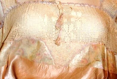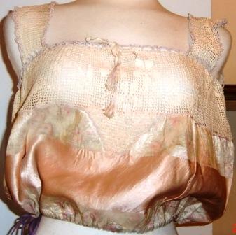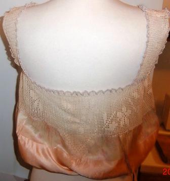 M187M Camisole Top ca 1910-15. This is a antique pink silk and hand crochet lace camisole top. It is in excellent condition.