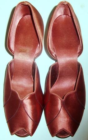 M199M 40s WWII Daniel Green Satin Slipper Heels Shoes.