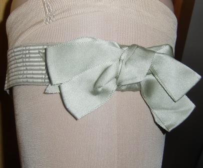 A green silk garter with big bow decoration.