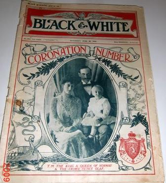 for the Black & White that they made a newspaper for the event. It displays pictures from the coronation in Nidaros Cathedral and the royal family. There are also many great ads that show the clothing fashion in 1906. The newspaper is in excellent condition.