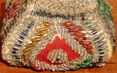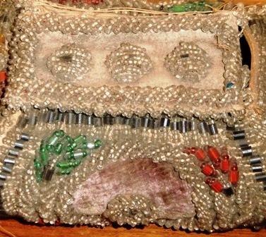 up) is beaded around the edges and has three raised beaded flowers. The
