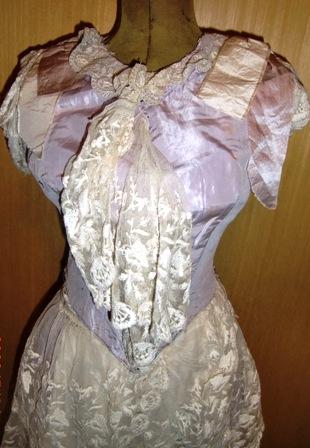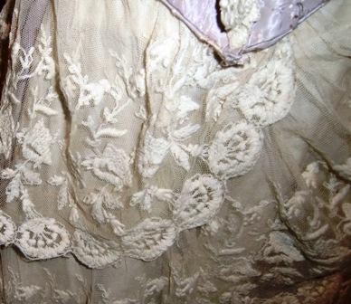 M432M ca 1900 Ball Dress with handmade lace.