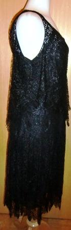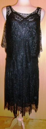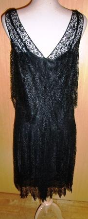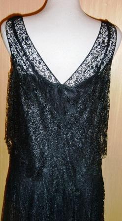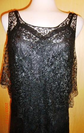 Lucien Lelong drop waist flapper dress made in 1925-26. The dress is in black lace. Lace is in excellent condition. This is a very early Lelong couture.