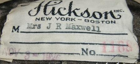 xxM483M Evening Dress Dated 1926. This beautiful black evening dress is in pristine condition. It has a label that says: Hickson inc New-York-Boston. Mrs J.R. Maxwell (who must be the owner's name), date stamped November 3th 1926. The dress must be purchased for a special occasion and then not used.