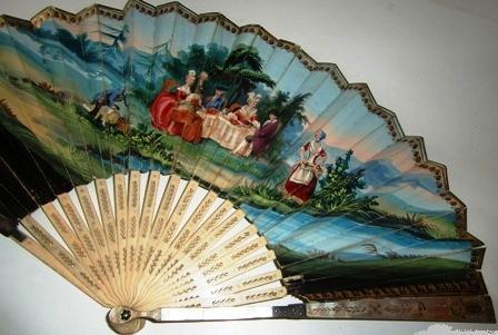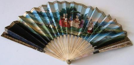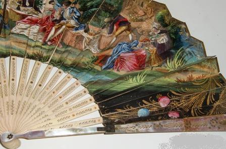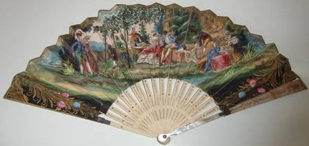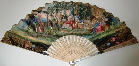 A FINE FRENCH HAND COLORED LITHOGRAPH FAN