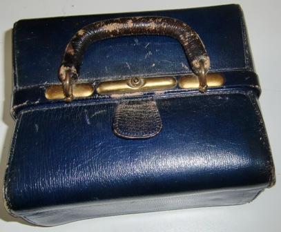 grooming pieces are marked sterling. The case is a navy blue on the