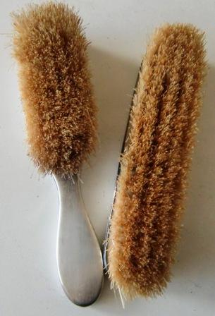 the backs/handles of the 2 brushes, the handle of the hook, the handle